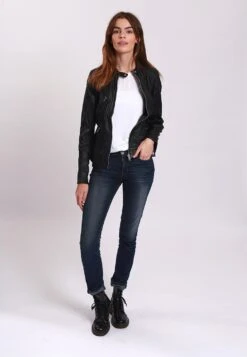 Lee Cooper Leather Jacket With Round Collar – 2 Zipped Side Pockets – – Leren Jas – Black